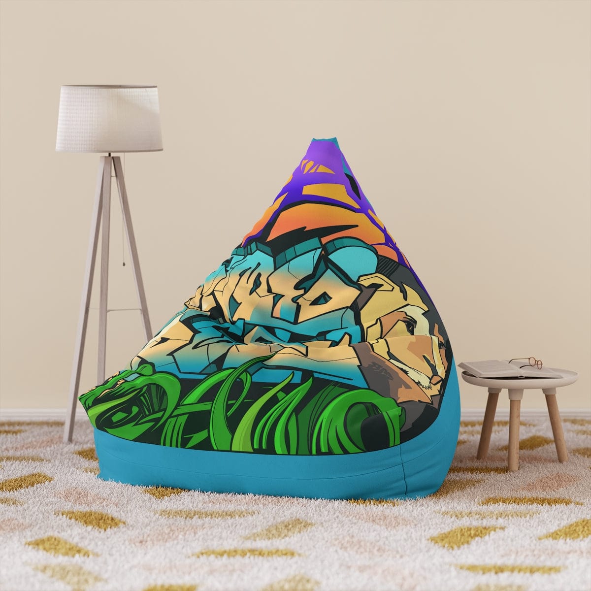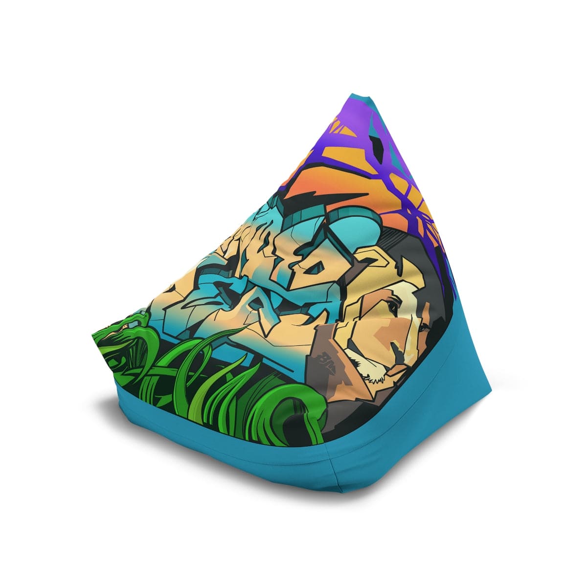 The Gamer Fresh Graffiti Streamer | All Art Lion NYC Mural | Turquoise Bean Bag Chair