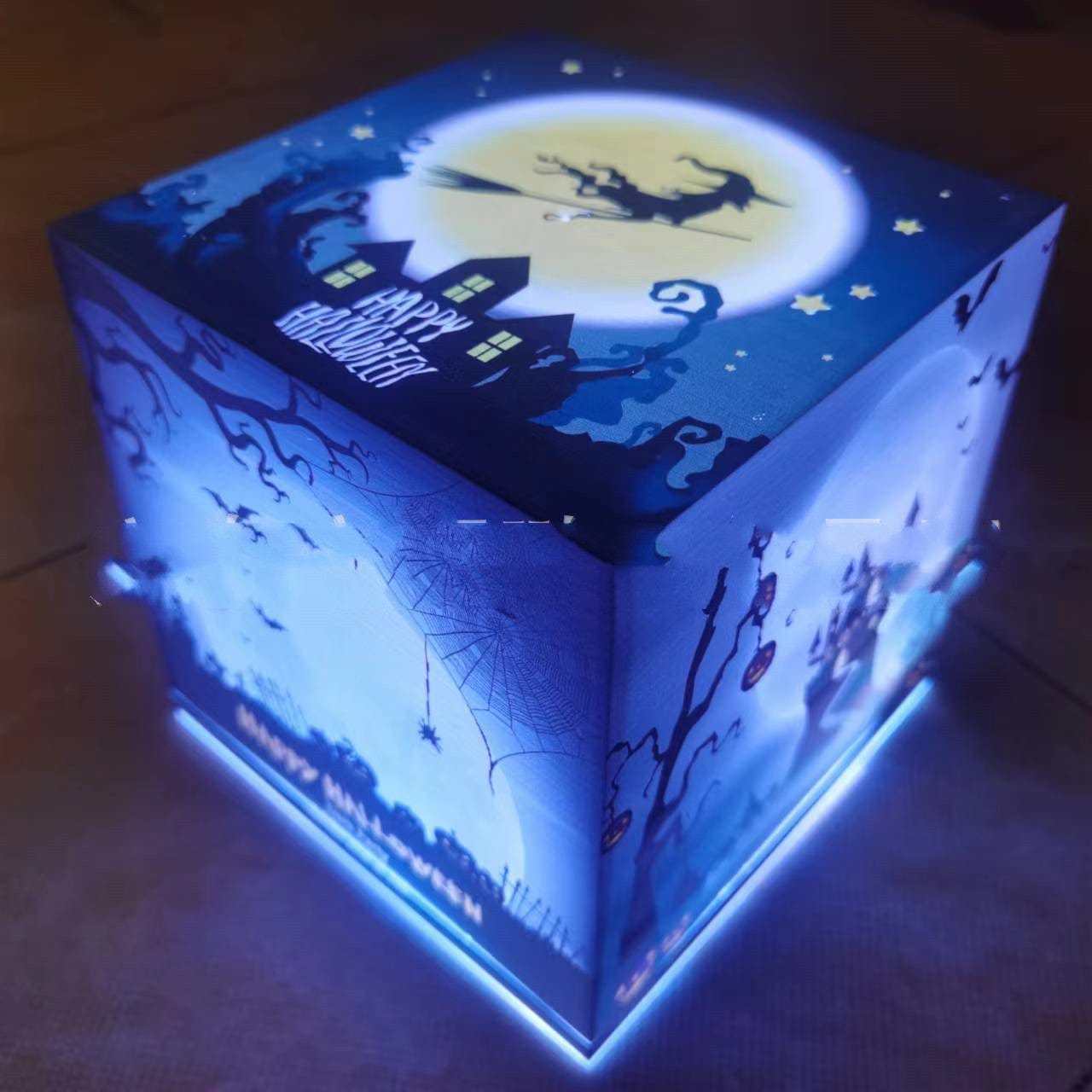 • Warm, Eerie Glow: The lantern box emits a soft, warm light that enhances the spooky ambiance of your space. Perfect for setting the mood at Halloween parties, trick-or-treat nights, or haunted house setups.