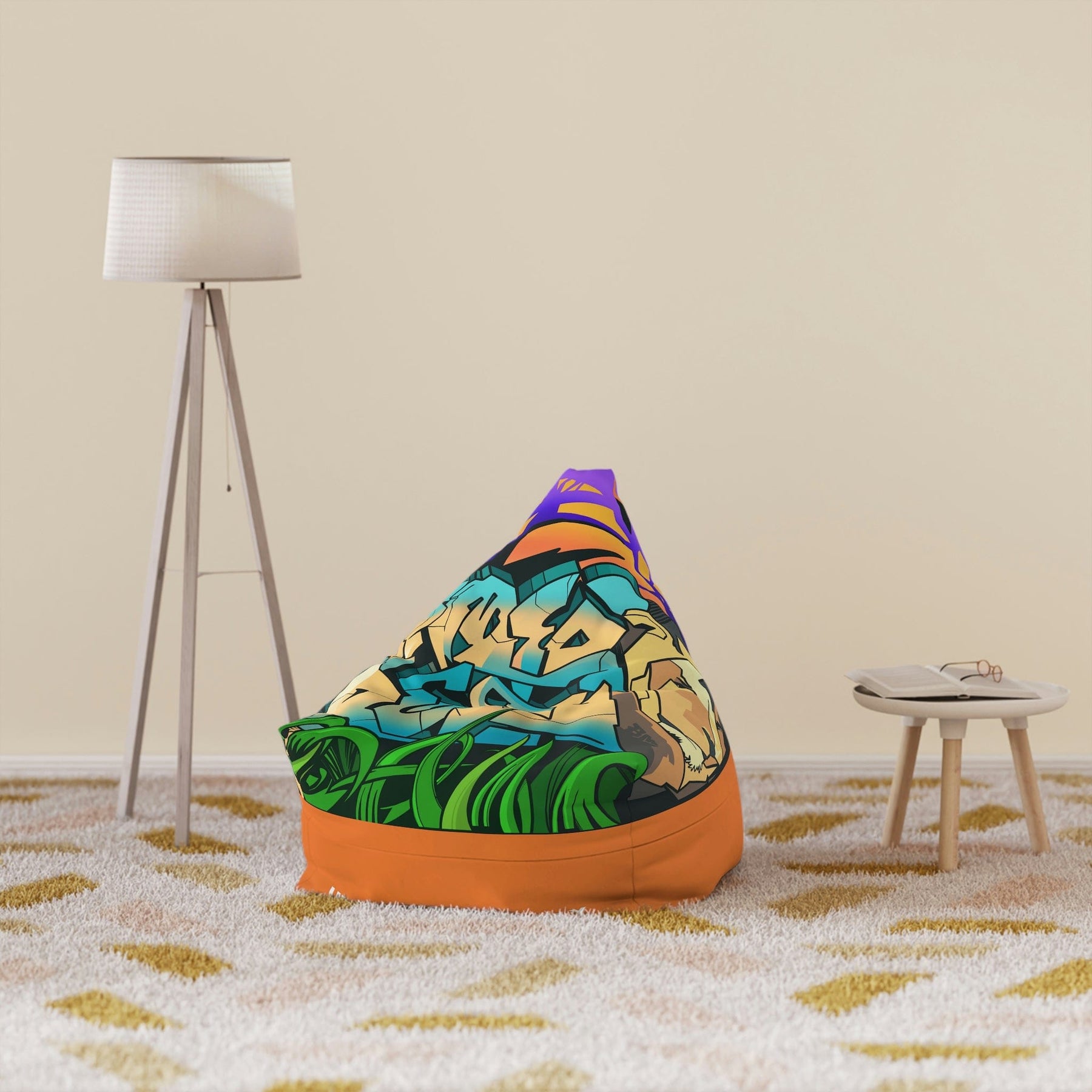 The Gamer Fresh Graffiti Streamer | All Art Lion NYC Mural | Caramel Brown Bean Bag Chair